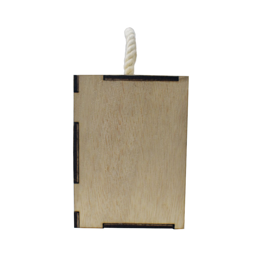 Caja de triplay natural de 5mm con corte laser, tapa deslizable y con aza con conrdón de algodón